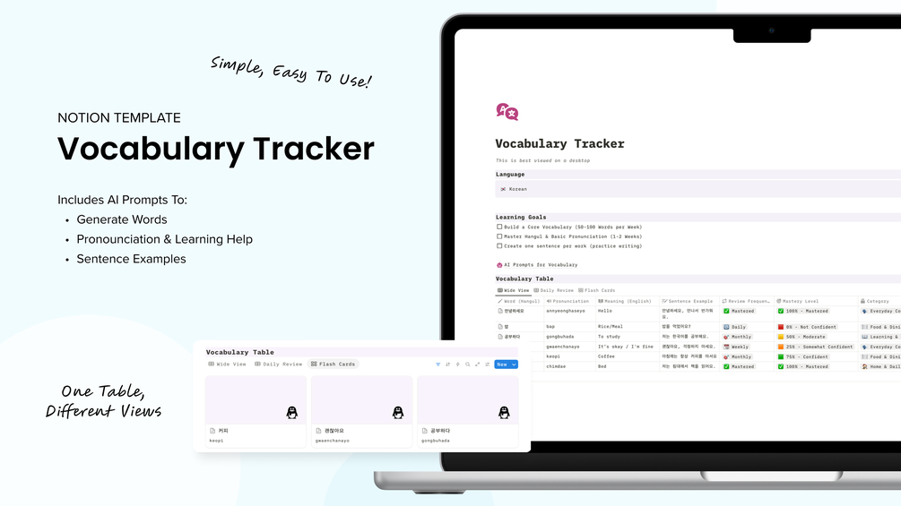 π Works for Any Language! Whether you're learning Korean, Japanese, Spanish, French, or any other language, this template keeps your words structured and easy to review.